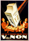 Affiche genevoise en faveur du droit de vote des femmes, réalisée en 1946 pour le parti du travail par Charles Gorgerat (Museum für Gestaltung Zürich, Plakatsammlung, Zürcher Hochschule der Künste).